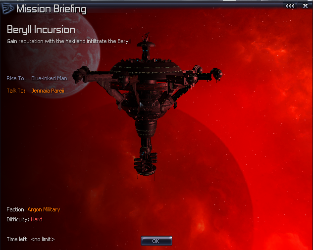 Your next task is to go undercover with the Beryll. You will need to gain enough reputation with the Yaki to dock. How you gain the rep is up to you, but i suggest using your Headquarters (if you have it yet), with Diplomacy to gain rep via agents.